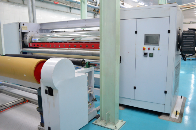The calender is composed of metal mirror roller and polyamide plastic roller, adopts infinitely adjusting medium & high technology and heating mode by conduction oil, which can make the nonwoven posses the characteristics of uniform thickness and high glossiness.