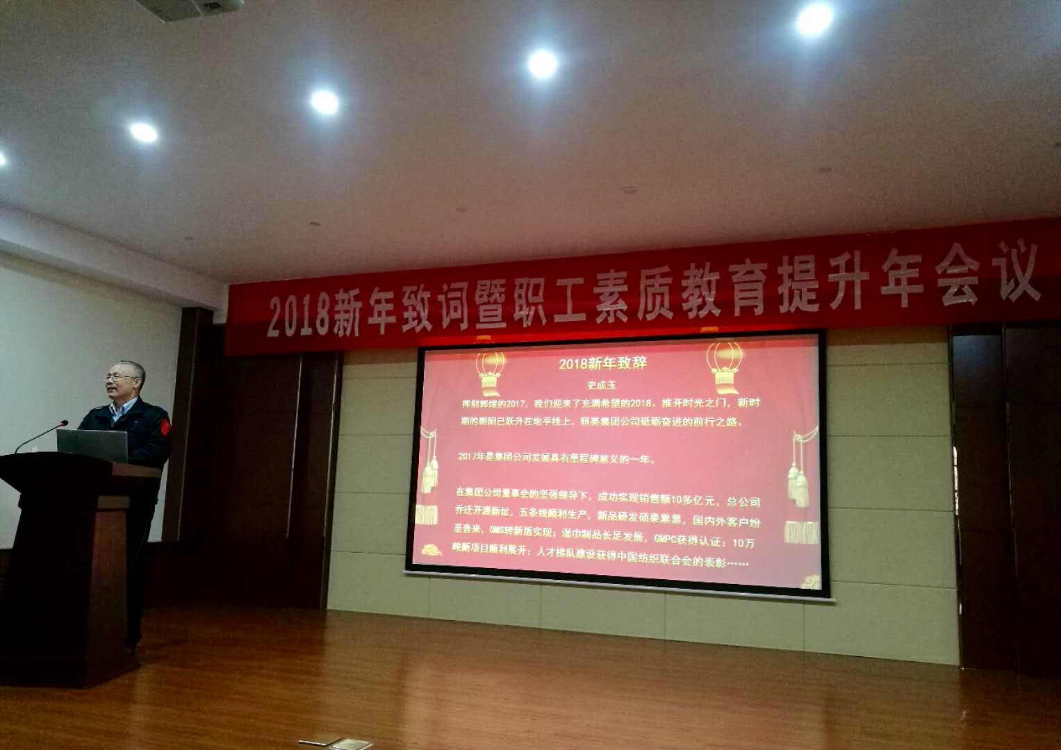 機協會(集團公司)2018新年致詞暨職工素質教育提升年動員大會在永信公司多功能廳召開,紡機公司全體員工、永信潤荷公司全體管理人員、永信潤荷公司班長參加了本次會議。