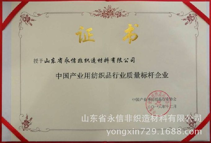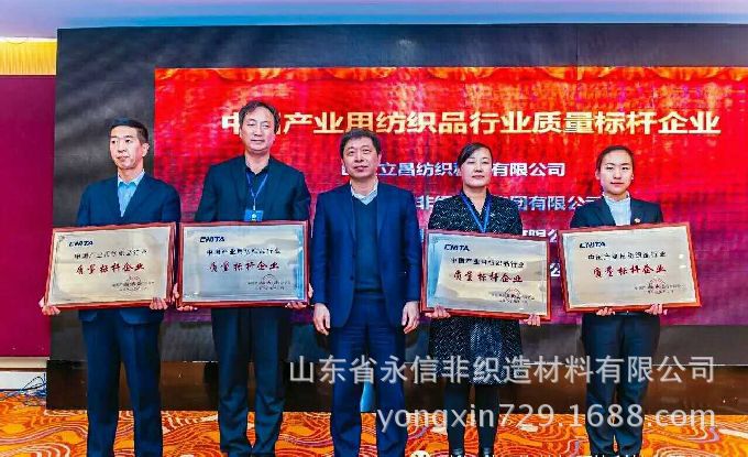 中國工程院院士俞建勇強調創新與質量發展的重要性,指出了質量是企業發展的生命線,創新是質量的驅動力,是提升質量的重要途徑。俞院士向山東省永信非織造材料有限公司等四家獲得 “中國產業用紡織品行業質量標桿企業”頒發證書和獎牌。