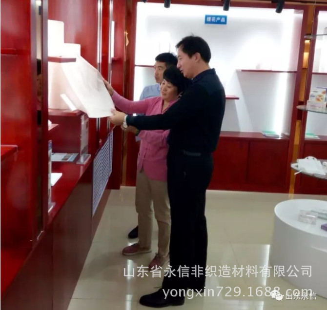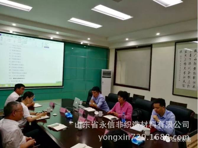 2017年9月29日,中國產業用紡織品行業協會副會長李桂梅、秘書長張傳雄、主任季建兵蒞臨永信公司開展調研,山東省永信非織造材料有限公司董事長、總經理、副總經理,濟南永信新材料科技有限公司總經理、常務副總經理陪同考察調研。