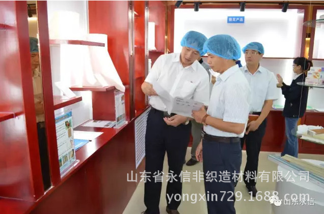 在企業技術中心,夏總陪同參觀了物理和生化實驗室;在產品展示中心,夏總介紹公司自主研發生產的系列生物質新材料非織造產品及其市場前景、應用領域、產品特性。