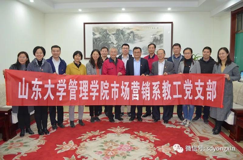 2019年11月15日,山東大學管理學院市場營銷系教工黨支部與山東省永信非織造材料有限公司黨支部在山東永信舉行結對共建揭牌簽約儀式。山東大學管理學院副院長王益民、黨委副書記石巖、市場營銷系主任王毅、市場營銷系教工委黨支部書記張喜民等領導一行,山東省紡織機械器材有限公司黨總支書記、永信公司董事長史成玉,山東省永信非織造材料有限公司黨支部書記、總經理夏倫全及黨員代表出席儀式。