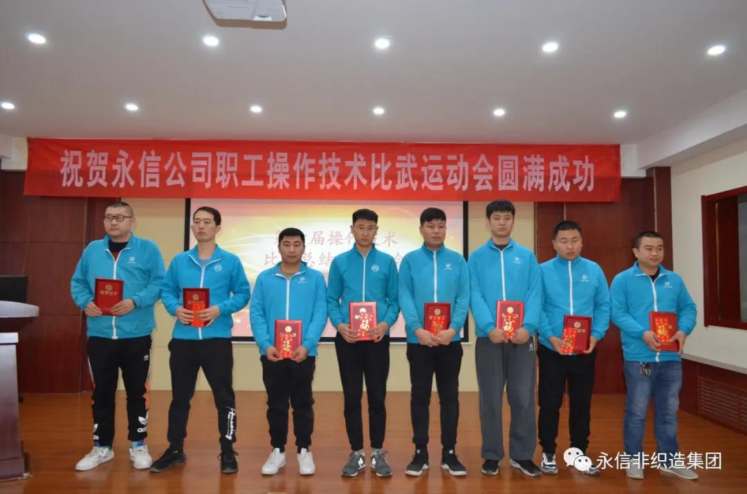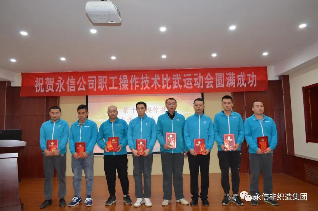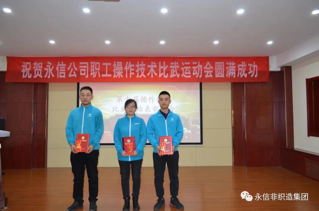 本屆操作比武活動共設11個比賽項目,有123人次參加比賽。比賽中各參賽單位和選手熱情高漲、認真比賽、精心操作,裁判人員做到公平、公正、公開考評,其中獲得三等獎有21人次、二等獎有14人次、一等獎有14人次,為鼓勵操作能手、表彰先進、促進永信公司全員操作技術水平的提升,保證產品質量和產量的穩定提高,公司對獲得一等獎、二等獎、三等獎選手進行了表彰。