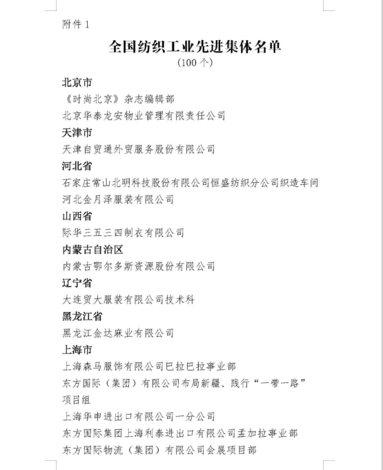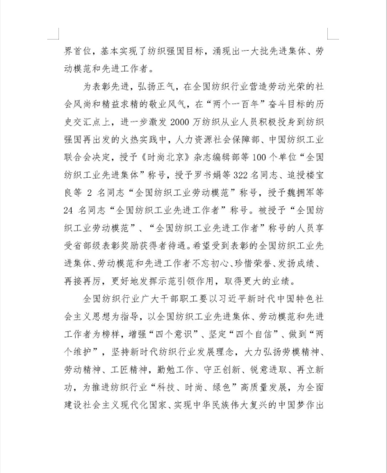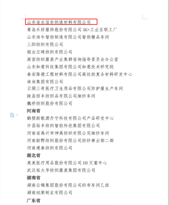 祝賀公司榮獲“全國紡織工業先進集體,山東專精特新企業稱號”